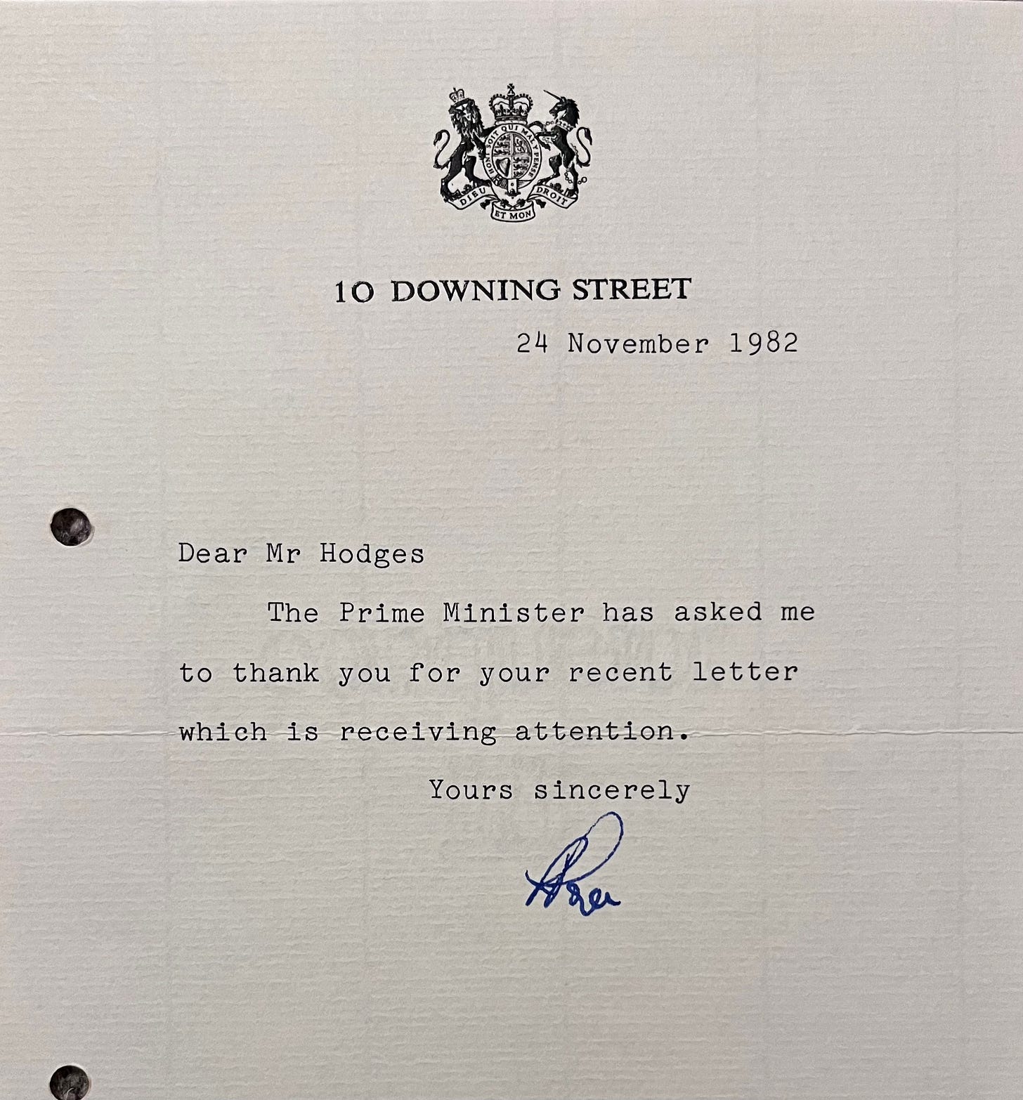 Every Friday evening News At Ten totalled up the jobs lost regionally and compared the figure with jobs created. It made for grim reading. During the autumn of 1982 the BBC screened Alan Bleasdale’s bleak reflection of Thatcher’s Britain in ‘Boys From the Blackstuff’. Once more, I was deeply affected. I resolved to pick up the threads of my own writing and began to pour my angst and festering grievances onto sheets of foolscap. Long handwritten pages of what I hoped would turn into something a little Bleasdale-like. I wrote letters too. Long, wordy protests at unemployment sent to MPs, union leaders, and a particularly lengthy one to Thatcher herself. I still have the blunt reply.