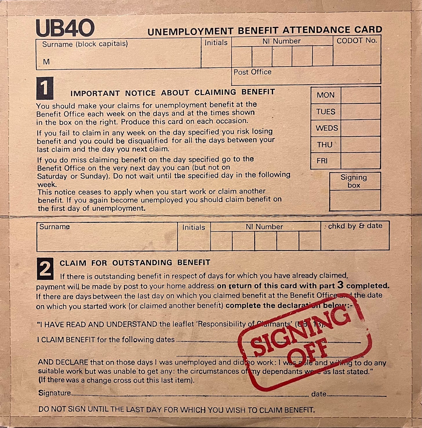 My order from Rockabuy Records came through today. Well they had an Easter sale, what’s a fella supposed to do? My bunch of goodies included UB40’s ‘Signing Off’, released in 1980.