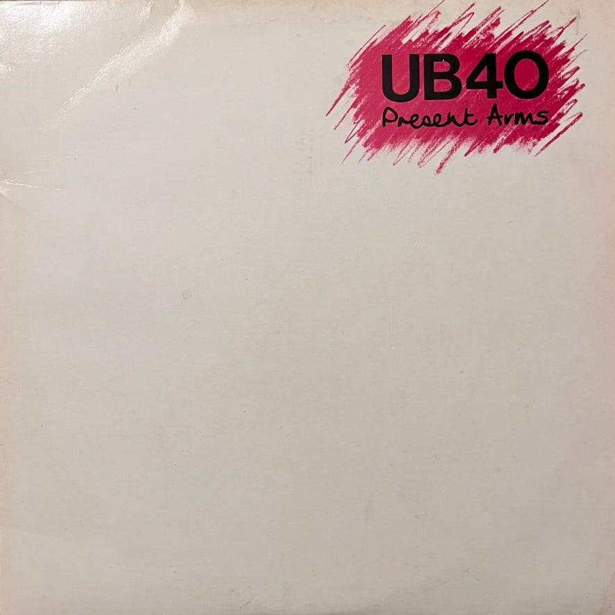 Often whilst writing I had ‘Present Arms’ on repeat play, the track ‘Don’t Let It Pass You By’ getting cranked up and ringing loudly around our 120 year old rented cottage. Nowadays at this stage of the game I guess I’ve pretty much let ‘it’ - whatever ‘it’ might have been - pass me by, but I’m okay with that. Back then though, at such a low ebb, and with UB40 playing, there was still the promise of possible success. That dream, along with the music kept me sane, for sure.